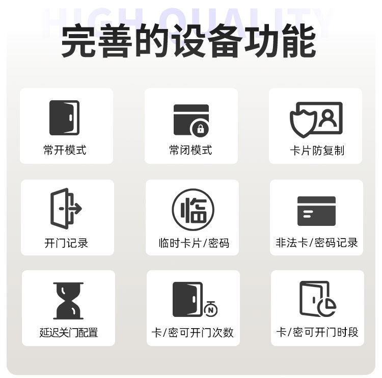 文山这款智能门锁提供室内门锁和防盗门锁两种选择,其中室内门锁尺寸为 2806521mm,适配 5050 锁体;防盗门锁尺寸为 3657021mm,适配 6068 锁体,可满足不同场景的安装需求。它采用铝合金一体成型搭配钢化玻璃面板打造,兼具坚固耐用的品质与简洁美观的视觉效果。门锁支持蓝牙无线通讯,解锁方式丰富多样,密码、卡片、蓝牙、钥匙四种方式随心选择,满足不同使用习惯与应急需求。其工作温度范围为 - 20~70℃,能适应多数地区的气候条件,采用碱性电池供电,安装更换便捷,是兼具安全性与实用性的门锁选择。